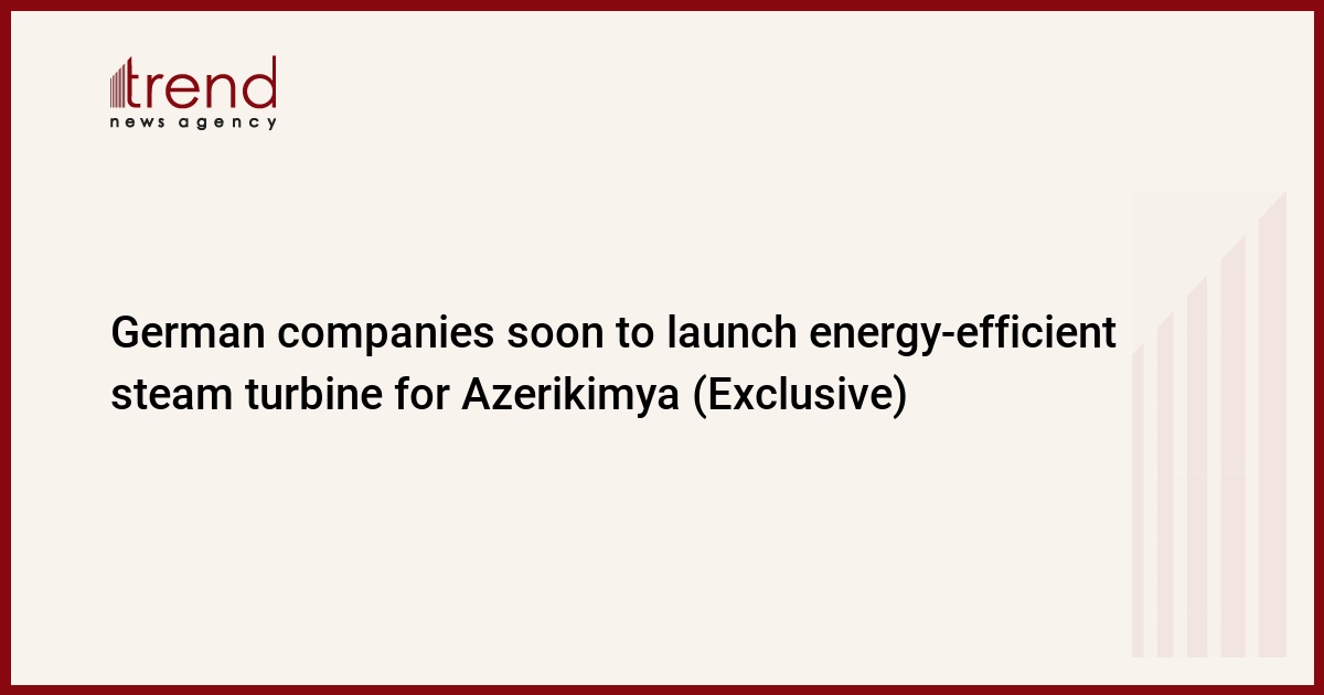 Germany’s Uniper and Siemens Energy company will soon launch an energy-efficient steam turbine for Azerikimya production union of Azerbaijan’s state oil company SOCAR, Tobias Baumann, Executive Board Member of German-Azerbaijani Chamber of Commerce told Trend.