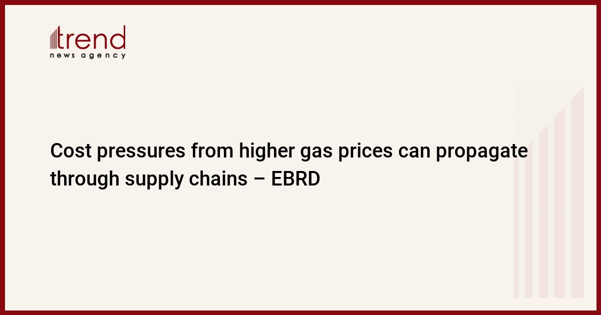 BAKU, Azerbaijan, September 28. For many economies higher gas prices imply sharp increases in gas import bills, equivalent to up to 4-5 percent of GDP, the European Bank for Reconstruction and Development (EBRD) said in September edition of the Regional Economic Prospects, Trend reports.