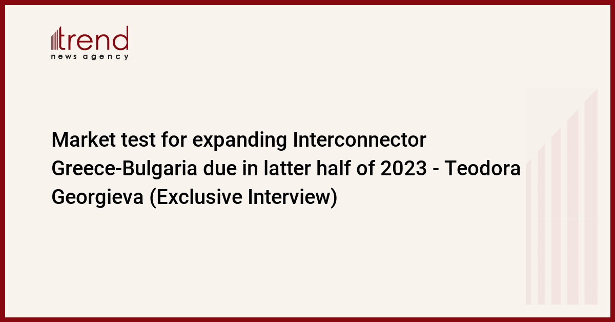 BAKU, Azerbaijan, June 1. The market test for expanding the Interconnector Greece-Bulgaria is planned to be held in the latter half of 2023, Teodora Georgieva, Executive Officer of the ICGB, the pipeline operator, said in an exclusive interview with Trend on the occasion of the Baku Energy Week.