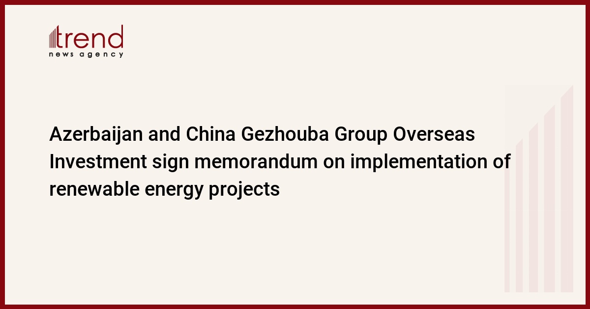 BAKU, Azerbaijan, June 1. The Ministry of Energy of Azerbaijan and the "China Gezhouba Group Overseas Investment" company have signed a memorandum of understanding, Trend reports.