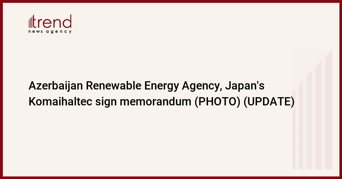 BAKU, Azerbaijan, June 24. A Memorandum of Understanding on renewable energy projects has been signed between the Azerbaijan Renewable Energy Agency (AREA) under the Ministry of Energy and the Japanese Komaihaltec company, Trend reports.