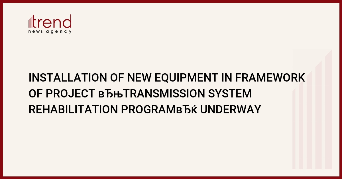 Installation of the new equipment within the framework of the project “The transmission system rehabilitation program”, credited by the German Development Bank KfW is underway, Azerenerji Joint Stock Company (JSC) told Trend. Replacement of keys at substations in Mashtaga, Evlakh, Yashma, Hirdalan, Imishli and etc. is mainly carried on.