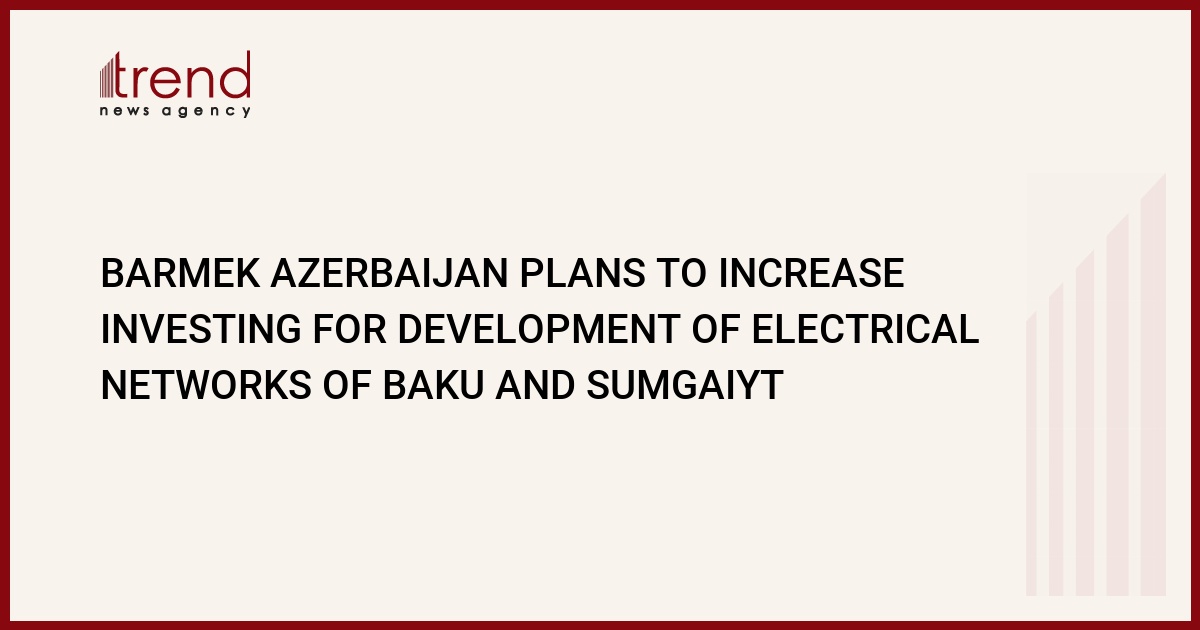 The Barmek Azerbaijan company (the operator of the electrical power distribution network of Baku and Sumgayit) plans in the current year to invest in the development of the electrical grids of Baku and Sumgaiyt, the volume of investments will exceed the figure stipulated in the contract with the government of Azerbaijan, the company's president Husseyn Arabul told Trend.