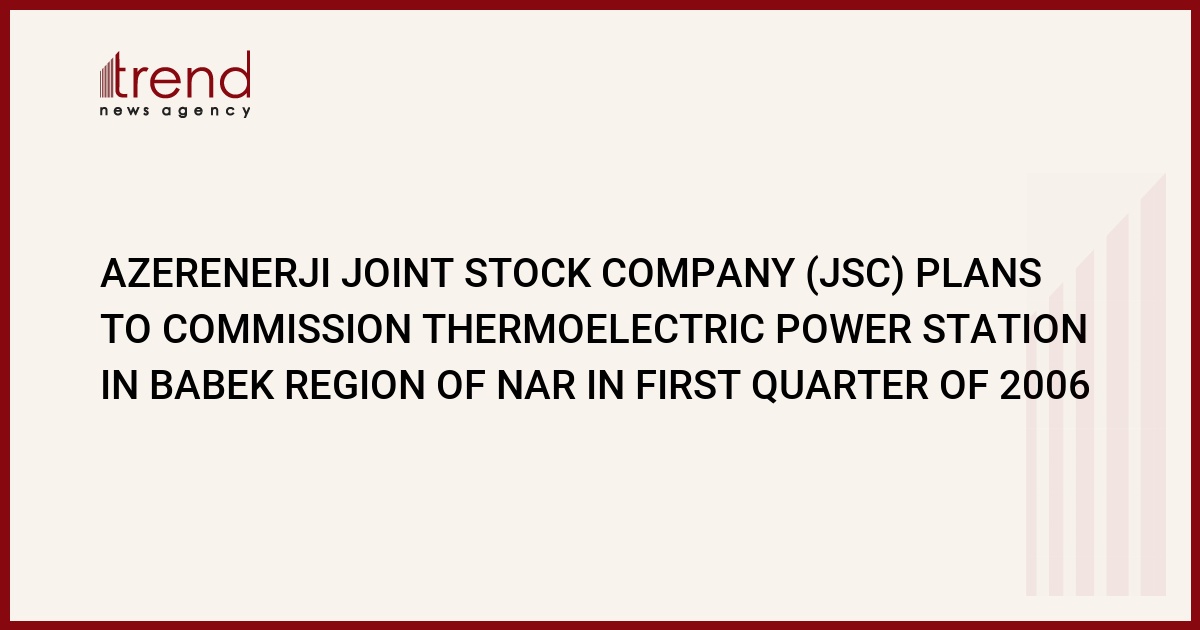 Azerenerji JSC plans to commission the thermoelectric power station in Babek region of the Nakhcheva Autonomous Republic (NAR) in the first quarter of 2006, the Azerenerji JSC vice-president Marlen Askerobv told Trend.