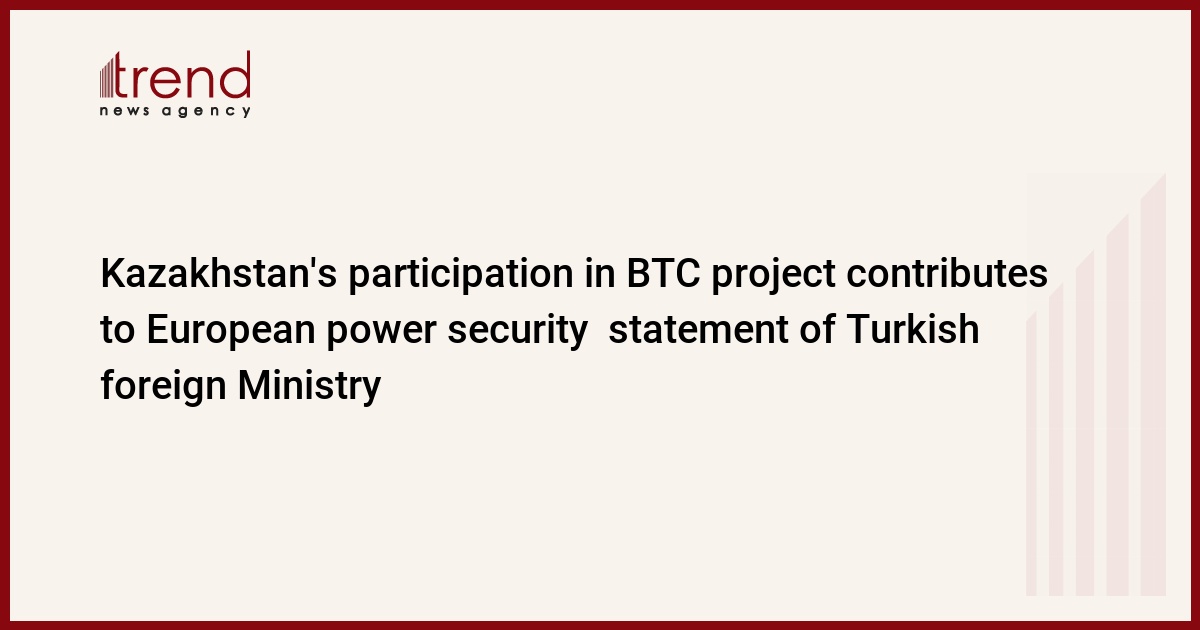 Turkish Foreign Ministry disseminated a written statement on the occasion of Kazakhstans joining BTC project, Trend reports with reference to Turkish media.