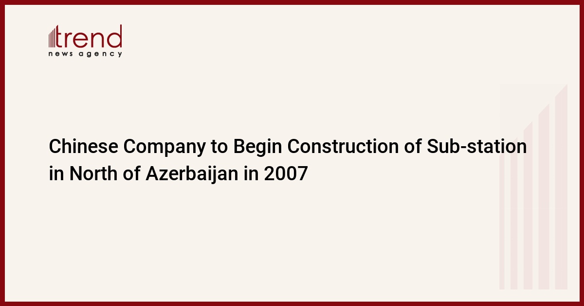 The Vice-President of Azerenerji Joint-Stock Company, Marlen Asgarov, informed Trend that Chinese company CNEEC who won the tender on the construction of Khachmaz Substation with a capacity of 330 kVt in the north of Azerbaijan in the first quarter of 2007 will develop a feasibility study of the project and soon after will begin to implement it.
