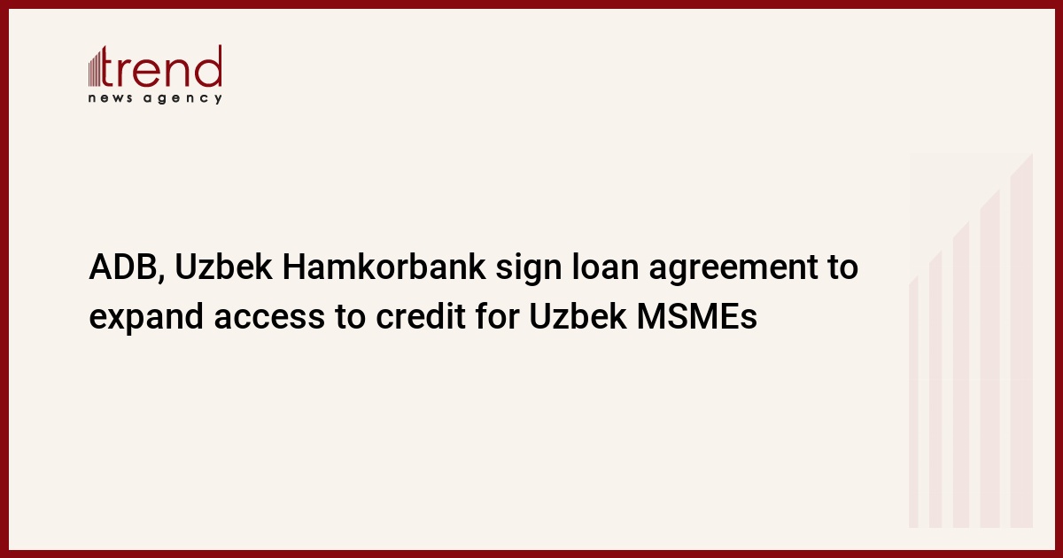 The Asian Development Bank (ADB) and Uzbek Hamkorbank JSСB signed a loan for $20 million to expand access to credit for micro, small, and medium-sized enterprises (MSMEs) and agricultural borrowers in Uzbekistan, Trend reports referring to ADB.
