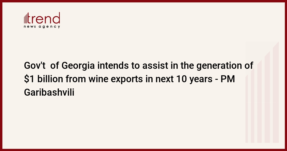 The Government of Georgia intends to assist in the generation of $1 billion from wine exports in the next 10 years, Georgian Prime Minister Irakli Garibashvili has announced at a meeting with winemakers held at Chateau Zegaani, in Kakheti region today, Trend reports citing Agenda.ge.