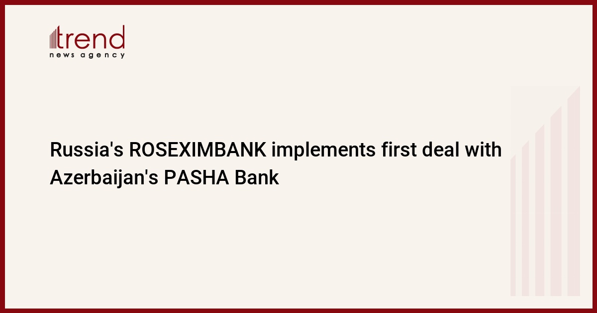 Russia’s ROSEXIMBANK JSC has implemented the first deal with Azerbaijan's PASHA Bank OJSC, providing financing under the insurance coverage of Export Insurance Agency of Russia (EXIAR) JSC for settlements under an export contract between the Russian RM Rail and Alliance Logistics companies, Trend reports citing the Russian Export Center (REC).