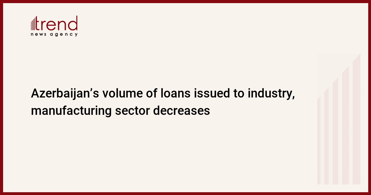 The volume of loans issued to the industry and manufacturing sector of Azerbaijan in 10M2021 decreased by 290.4 million manats ($170.9 million), or 23.8 percent compared to the same period last year – up to 931.1 million manats ($547.9 million), Trend reports with reference to the Central Bank of Azerbaijan (CBA).