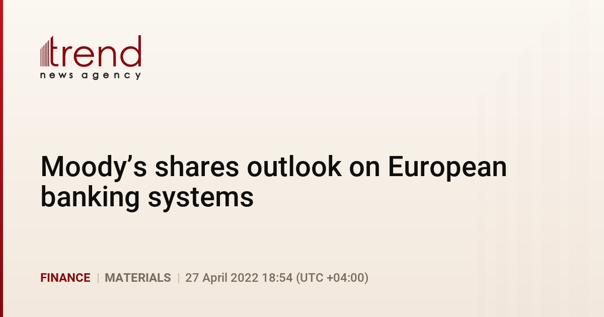 BAKU, Azerbaijan, April 27. European banking systems will continue to recover from the COVID-19 pandemic shock, however, at a slower pace, Trend reports via the outlook from Moody’s Investors Service.