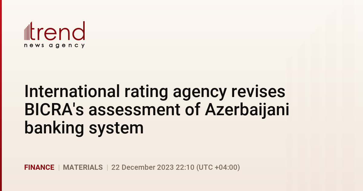 In this regard, S&P has improved its industry risk assessment from "9" to "8" and now classifies Azerbaijan's banking system as group "8" rather than "9" on Banking Industry Country Risk Assessment (BICRA).