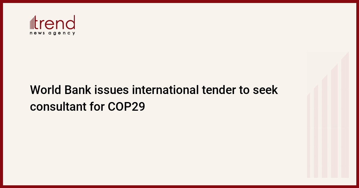 BAKU, Azerbaijan, April 8. The World Bank (WB) has announced an international tender to find a consultant in the "COP29" category for a one-year period of work with the possibility of extension and is accepting applications from candidates until April 18, 2024, Trend reported on Monday, citing the WB message.