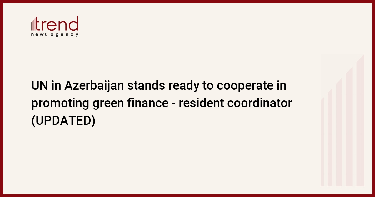 BAKU, Azerbaijan, October 18. The UN in Azerbaijan is ready and committed to cooperating with national partners and the private sector to promote green finance to accelerate the achievement of the SDGs, the acting UN Resident Coordinator in Azerbaijan Nasar Hayat said at the forum titled “Green Finance and Sustainable Development” in Baku today, Trend reports.