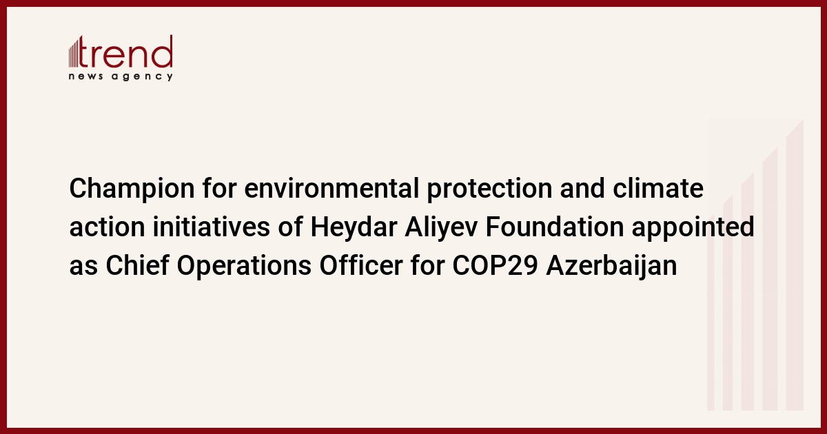 BAKU, Azerbaijan, January 22. Narmin Jarchalova is appointed as a Chief Operations Officer for COP29 Azerbaijan, Trend reports.