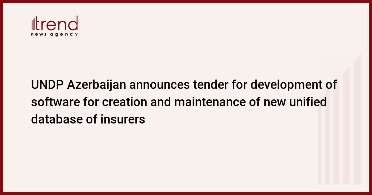 United Nations Development Program announces a tender development of software for creation and maintenance of new unified database of insurers corresponding requirements of both the SSPF and the Ministry of Taxes of the Republic of Azerbaijan, UNDP said.