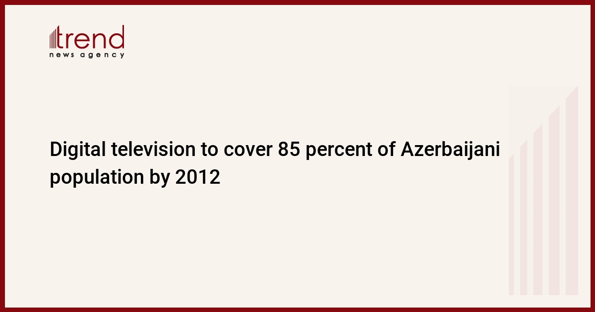 Until January 2012, digital TV will cover 85 percent of the population of Azerbaijan, Deputy Minister of Communications and Information Technologies of Azerbaijan, Elmir Velizadeh, said in an interview posted on the official website of the ruling New Azerbaijan Party.