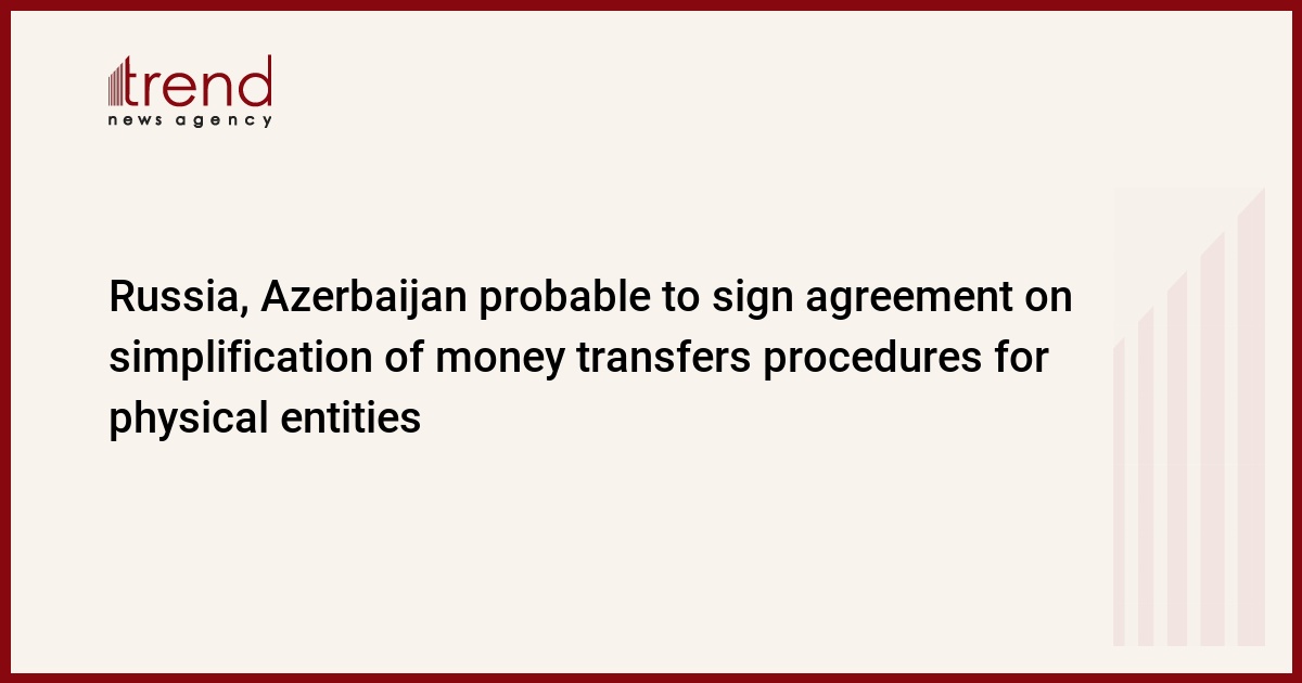An intergovernmental agreement on simplification of money transfer procedures for physical entities will be signed between Russia and Azerbaijan in 2006. The Ministry of Communications and Technologies told Trend Ministry has done all necessary work and a draft agreement was presented to Russia for consideration.