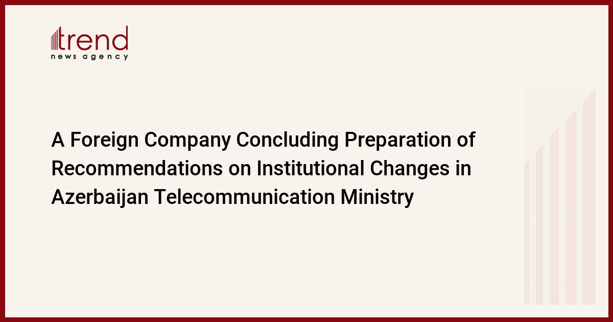 Strategic Policy Research Inc., a foreign consulting company is completing the preparation of recommendations for the Azerbaijan Telecommunication and IT Ministry within an agreement with the United States Trade and Development Agency (USTDA), a source in the Ministry informed Trend today.