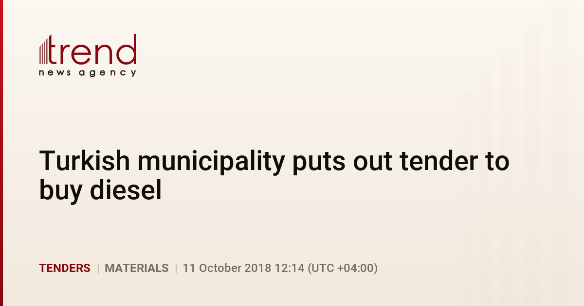The municipality of Turkey's Kocaeli Province has announced an open tender to purchase of 800,000 liters of diesel.