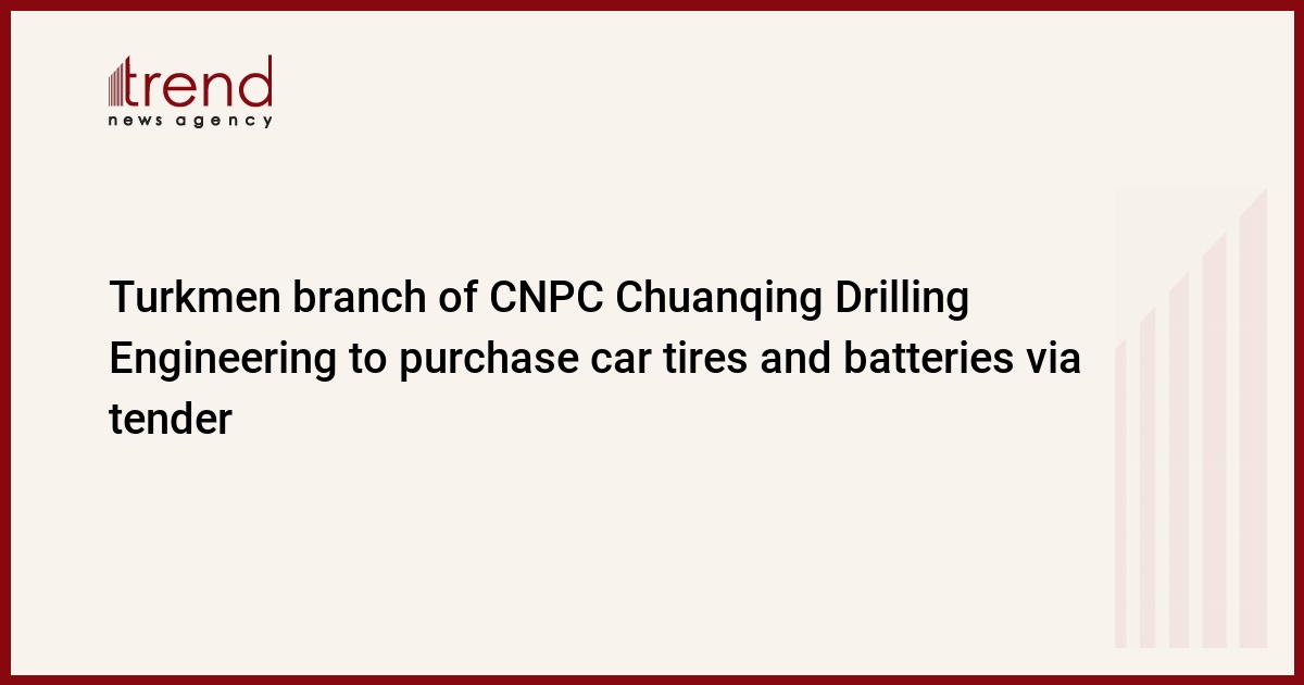 CNPC Chuanqing Drilling Engineering Company Limited branch in Turkmenistan has announced an open tender to purchase car tires and batteries.