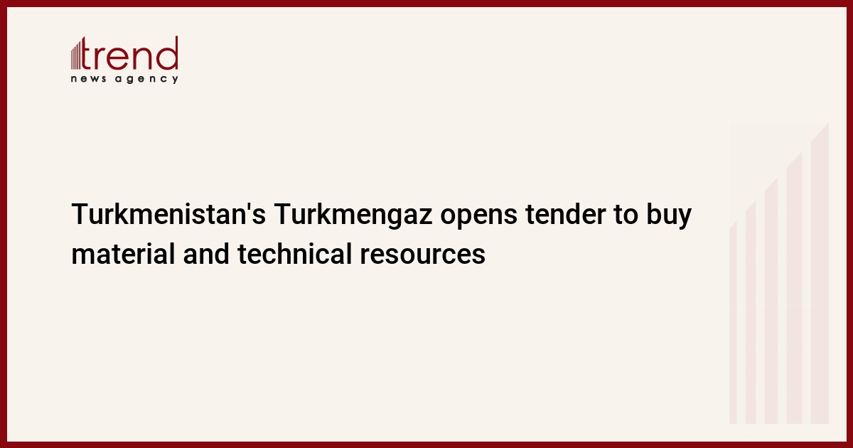 ASHGABAT, Turkmenistan, June 13. Turkmenistan's Turkmengaz State Concern has announced a tender for the purchase of material and technical resources for its needs.