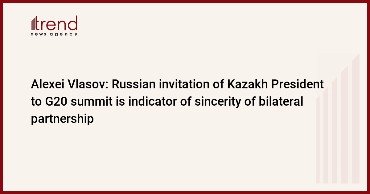 The Russian invitation to President Nursultan Nazarbayev to the G20 summit is an indication of the sincerity of the bilateral partnership between the two neighbors, executive director of the Centre for Political Science 'North-South', director of the Centre for the Study of Socio-Political Processes in the Post-Soviet Space of the Moscow State University and member of Trend Expert Council Alexei Vlasov said.