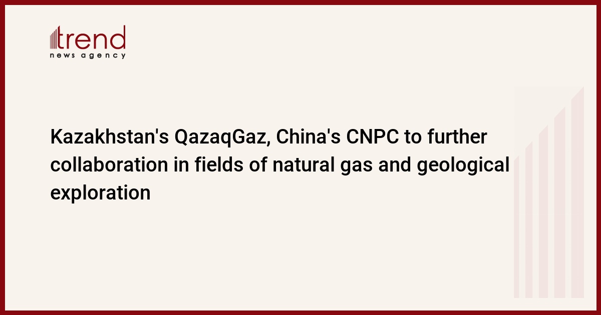 BAKU, Azerbaijan, May 18. Kazakhstan's QazaqGaz national company and China National Petroleum Corporation (CNPC) signed an agreement on cooperation in the fields of natural gas and geological exploration, Trend reports via the press service of QazaqGaz.