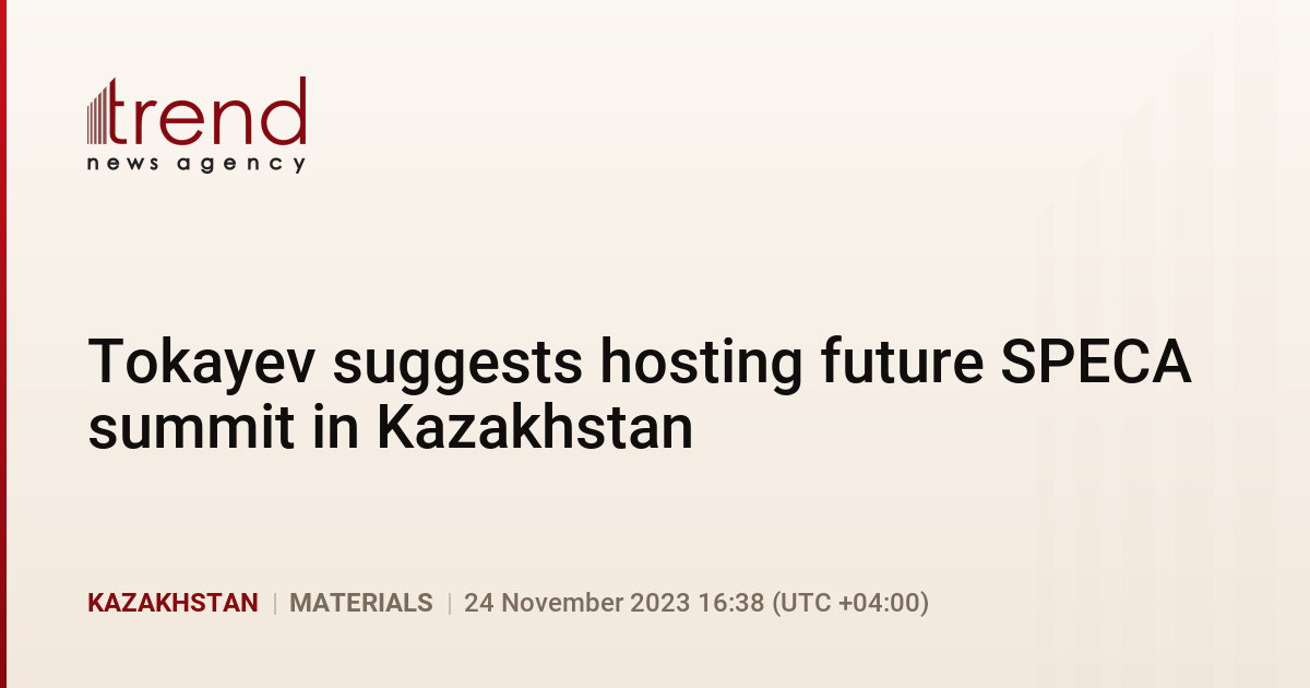 BAKU, Azerbaijan, November 24. I would also like to propose Kazakhstan as a venue for one of the next SPECA summits at a mutually agreed time, said Kazakh President Kassym-Jomart Tokayev during his speech at the first summit of the heads of state participants of the UN Special Program for the Economies of Central Asia (SPECA) in Baku, Trend reports.