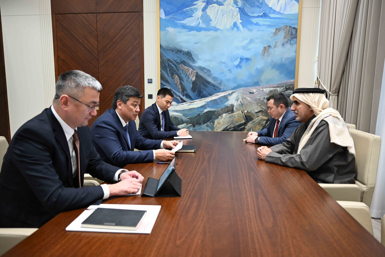 The discussion took place during a meeting between the Deputy Chairman of the Cabinet of Ministers of Kyrgyzstan and Minister of Water Resources, Agriculture and Processing Industry Bakyt Torobaev, and Ambassador Extraordinary and Plenipotentiary of the State of Qatar to the Bishkek Ali Jaber Mohammed Al Ghufran Al Marri.