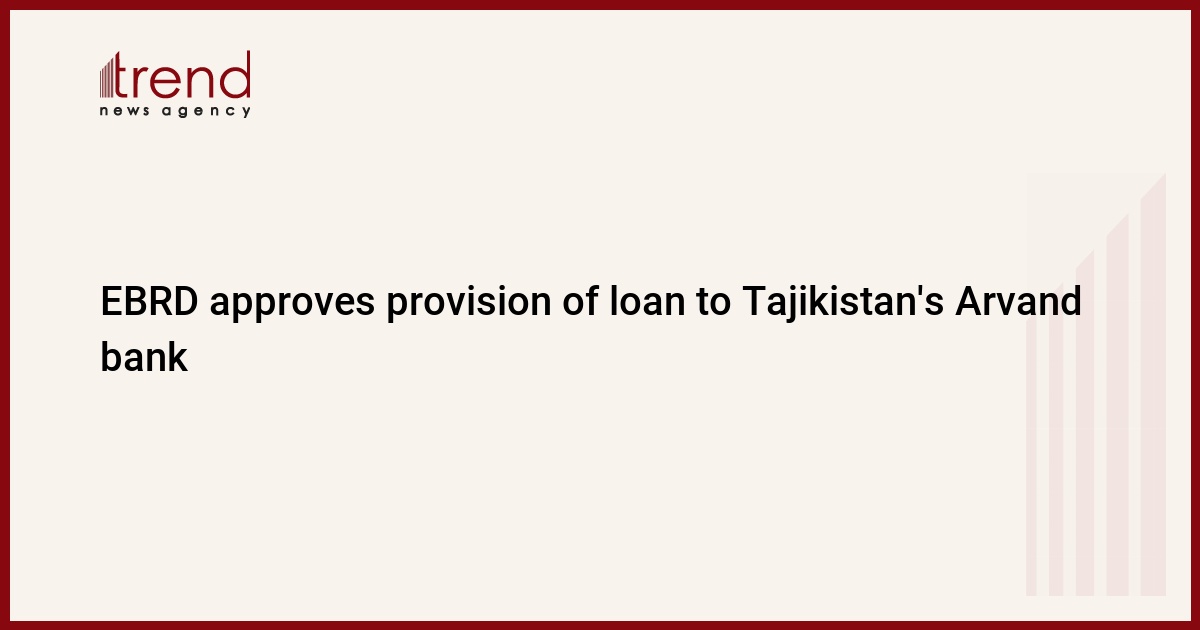 DUSHANBE, Tajikistan, August 14. The European Bank for Reconstruction and Development (EBRD) has approved a loan of up to $3 million for Arvand Bank in Tajikistan, with an additional $1 million provided by the Green Climate Fund (GCF), Trend reports.