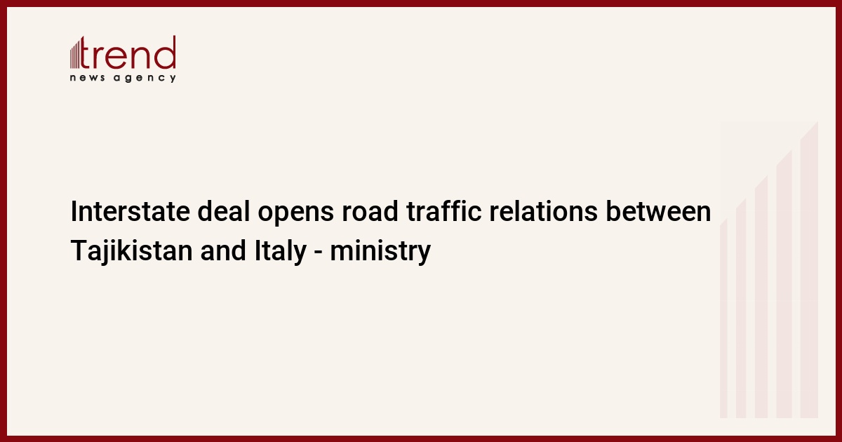 BAKU, Azerbaijan, May 27. An intergovernmental agreement signed between the Government of Italy and the Government of Tajikistan will allow the commencement of traffic relations between the two countries by road, a source at the Ministry of Infrastructure and Transport of Italy told Trend.