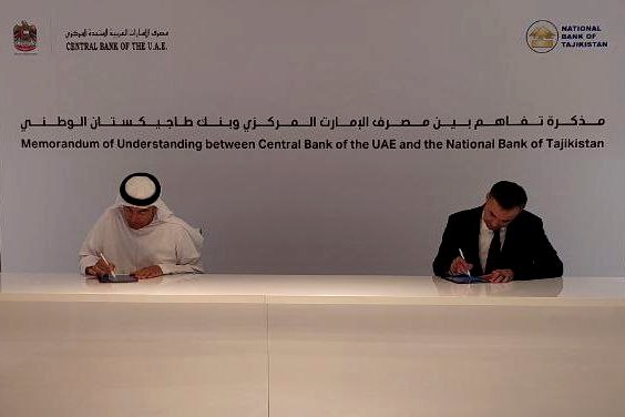 The document was signed following a meeting between Tajikistan’s Bank Chairman, Firdavs Tolibzoda, Tajikistan's Ambassador to the UAE, Ashrafjon Gulov, and UAE Central Bank Governor Khaled Mohamed Balama, along with other senior bank officials.