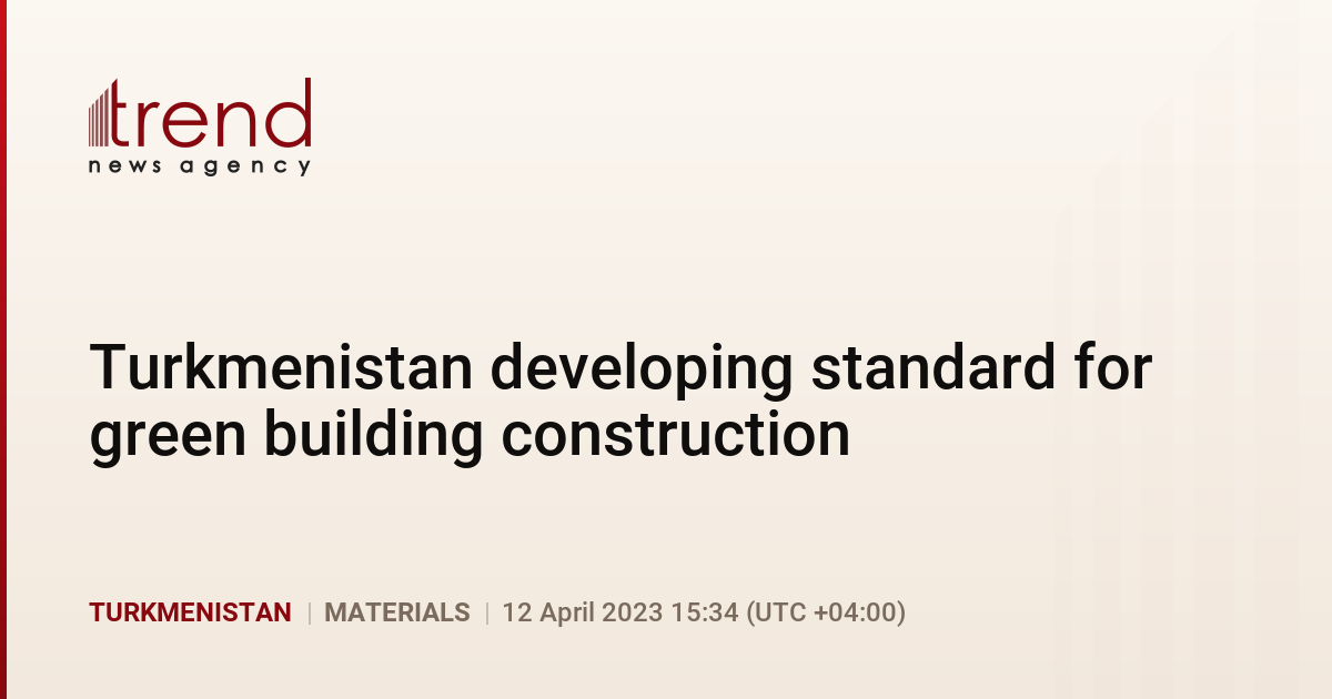 BAKU, Azerbaijan, April 12. Within the framework of the joint project of UNDP and the Turkmen Ministry of Agriculture and Environmental Protection "Sustainable Cities in Turkmenistan: Integrated Green Urban Development in Ashgabat and Awaza", a working meeting on the development of "green" construction in the country was held in Turkmenistan, Trend reports with reference to the Turkmen media.