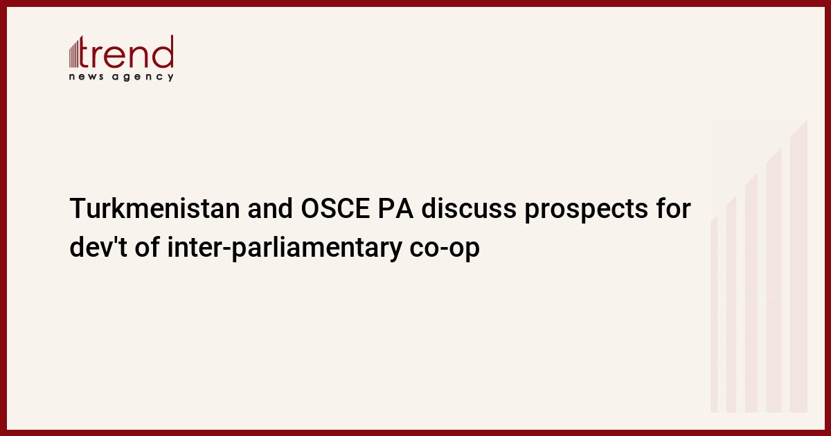ASHGABAT, Turkmenistan, April 6. Turkmenistan and the Parliamentary Assembly of the Organization for Security and Co-operation in Europe (OSCE) discussed prospects for the development of inter-parliamentary cooperation, Trend reports.