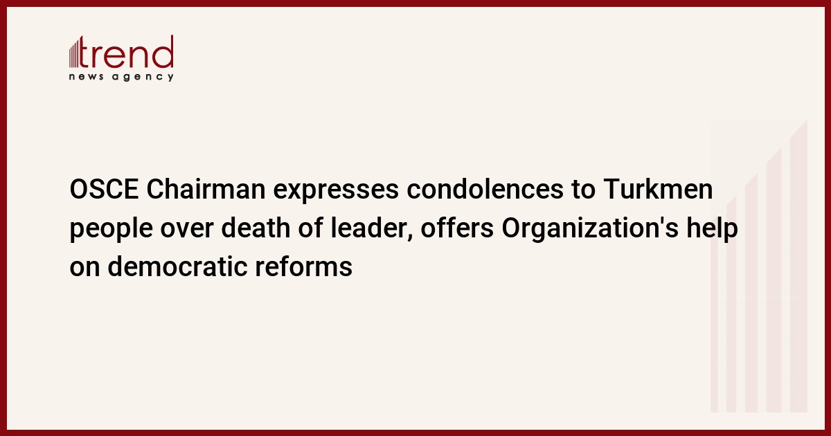"This will undoubtedly be a difficult period. The people of Turkmenistan may well feel uncertain after two decades ruled by one man," said the Chairman-in-Office. "The OSCE stands ready to help with any transition, to advance democratic reforms and to ensure stability in the country and across the strategically vital region of Central Asia."
