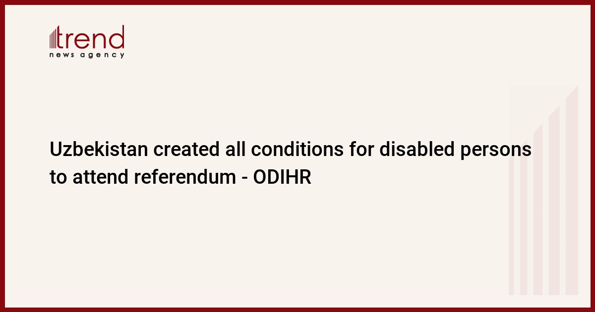 BAKU, Azerbaijan, May 2. Uzbekistan created all conditions for disabled persons' attendance at the referendum, Head of the Limited Referendum Observation Mission of OSCE Office for Democratic Institutions and Human Rights (ODIHR) Albert Jonsson said, Trend reports.