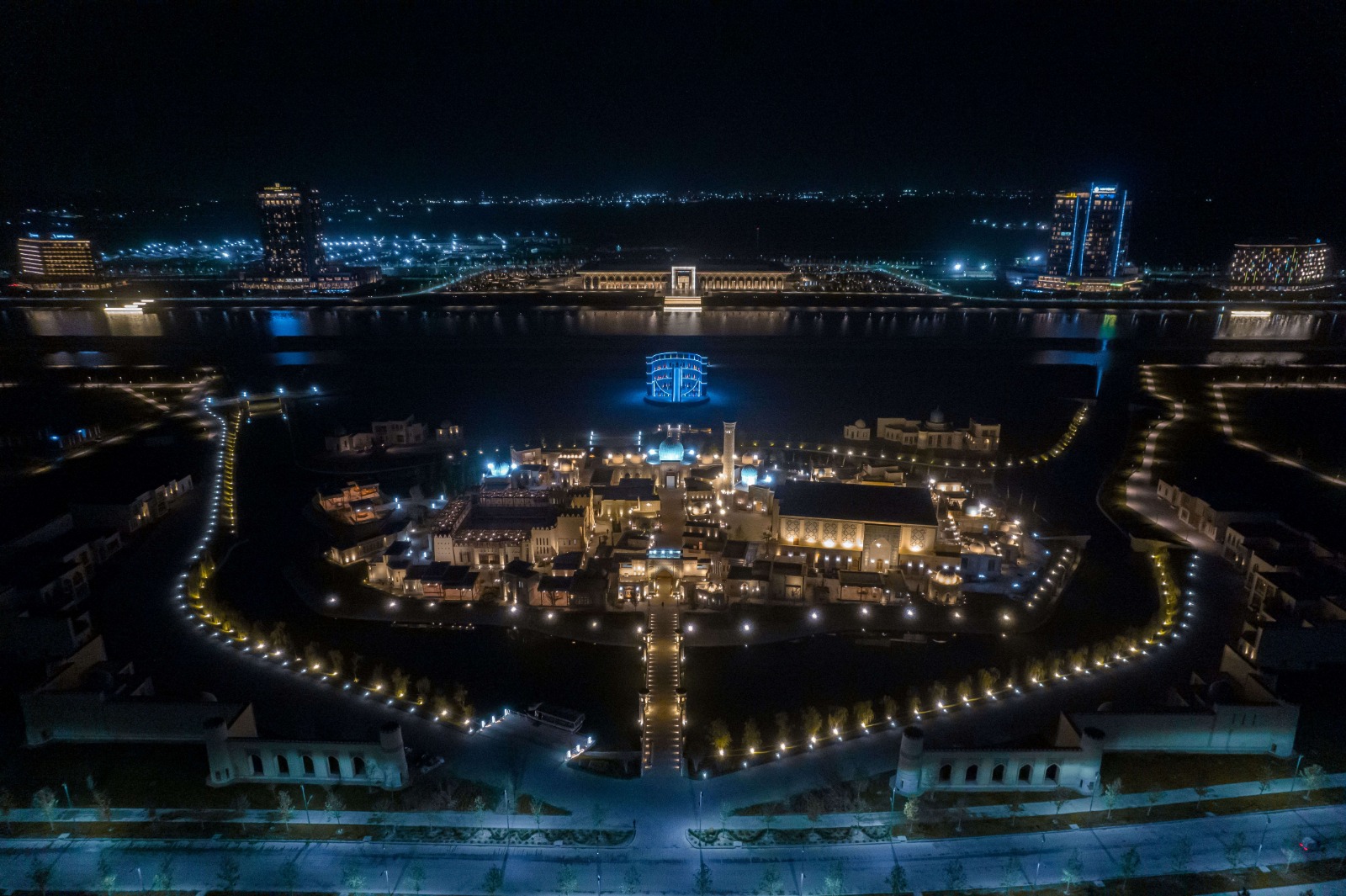 Covering an area of 260 hectares around the city’s Republican Rowing Canal, Silk Road Samarkand was originally built at a cost of $580 million and was opened in August 2022 by the President of Uzbekistan Shavkat Mirziyoyev. It now incorporates eight world-class 5- and 4-star hotels with almost 1,200 rooms, plus an international congress center, an expo center covering 4,000 square meters, a family-friendly waterpark, parks and other open spaces, sports arenas, 30 restaurants, bars, cafes, and nightclubs, plus much more for leisure, business, gastronomic, and health tourists.