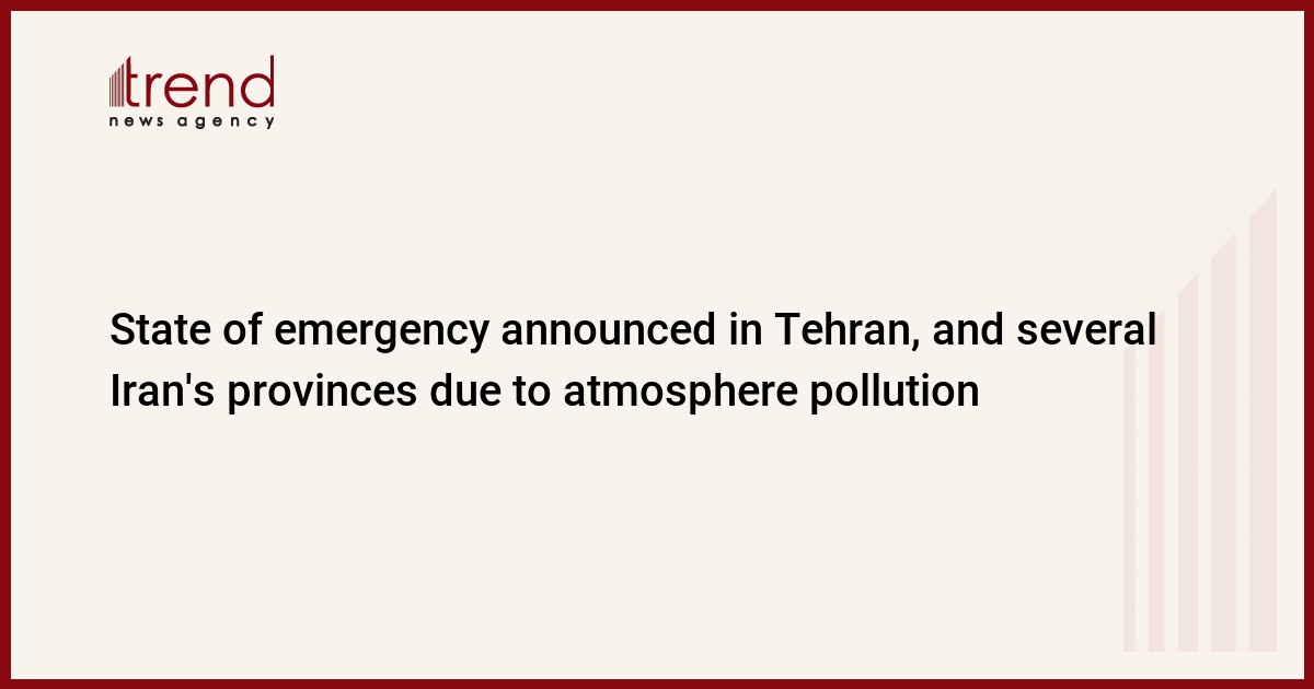State of emergency due to increase of atmosphere pollution is announced in Tehran, western provinces, north-west and south regions of Iran, Mehr information agency said.