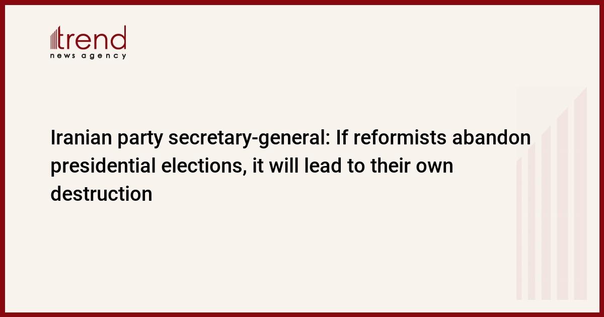 If reformists to abandon the upcoming presidential elections in Iran, it will eventually lead to their own destruction, secretary-general of Iranian Islamic Coalition party (Islamic Motalefeh party), conservative politician Hassan Ghafourifard told Trend in an interview.