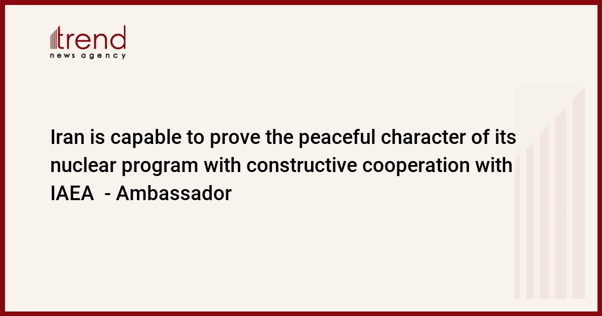 "The Russian side is positive that Iran is capable to prove the exclusively peaceful character of its nuclear program while cooperating with IAEA in a constructive way," the Ambassador said.
