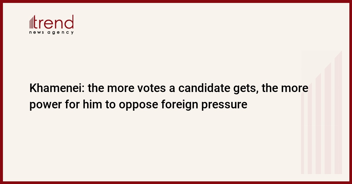 The more votes a particular candidate gets at the upcoming presidential elections, the more power he will have to oppose the foreign pressure, Iran's Supreme Leader Ayatollah Khamenei said, Mehr News Agency reported.
