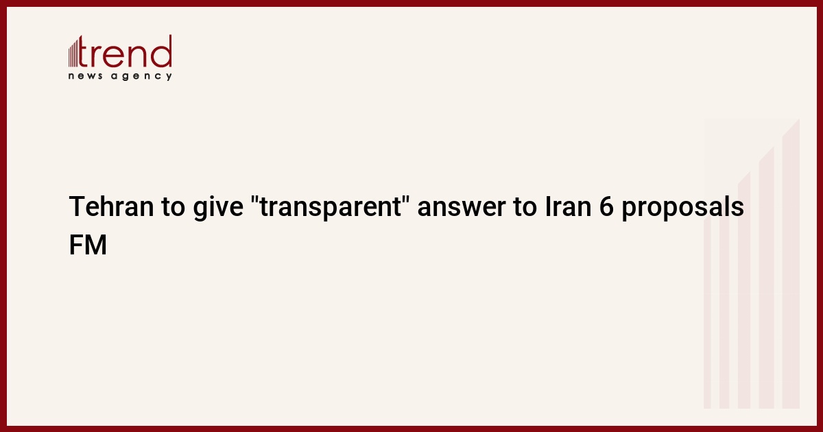 (RIA Novosti) - Tehran will give an "absolutely transparent" answer to the Iran Six's package of proposals to settle the crisis around the Iranian nuclear program, the country's foreign minister said Saturday.