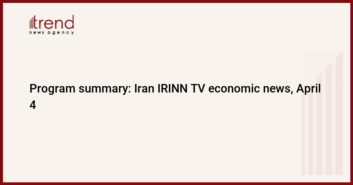 The following is a numbered list of news on latest economic developments in the Islamic Republic of Iran, as of 11:00 GMT, April 4, on IRINN TV.