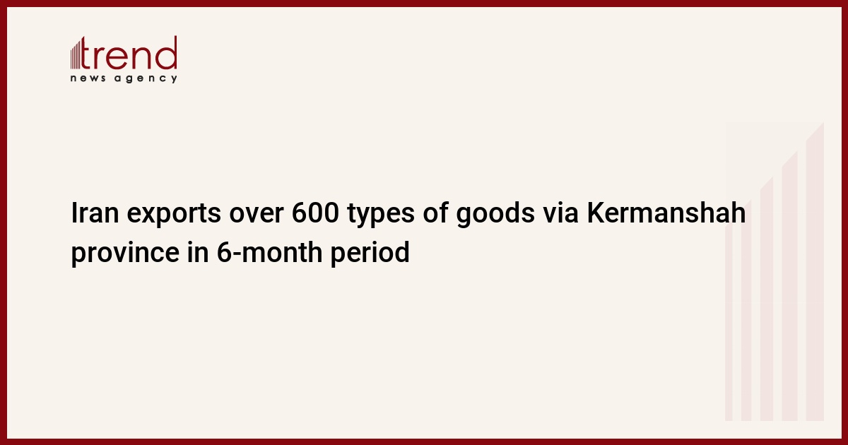 In the first six months (from March 21 to Sept.22, 2019) of the current Iranian year, Iran exported 602 types of goods via the customs of its Kermanshah province, Chairman of Kermanshah Industry, Mine and Trade Organization Mohsen Darabi said, Trend reports citing IRNA.