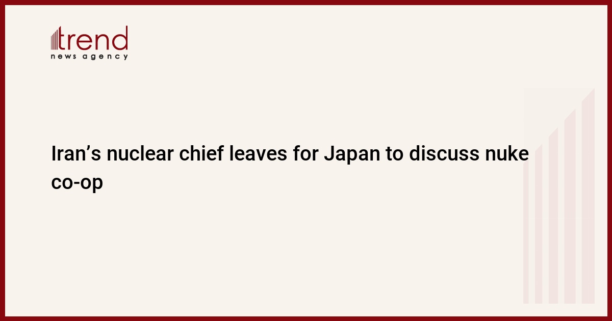 Head of Iran's Atomic Energy Organization (AEOI), Ali Akbar Salehi, left Tehran for Tokyo, Japan Nov. 1 to discuss mutual cooperation in areas of nuclear safety, said AEOI spokesman Behrouz Kamalvandi.