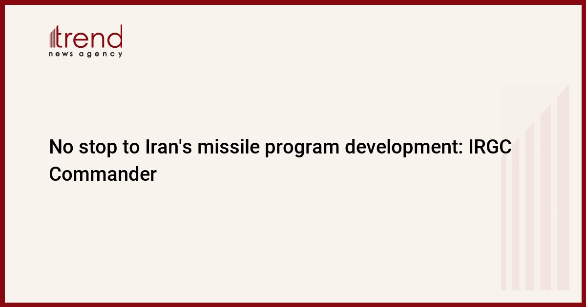 A senior commander of the Islamic Revolution Guards Corps (IRGC) says Iran will never stop developing its "defensive and deterrent" ballistic missile program, Press TV reported.