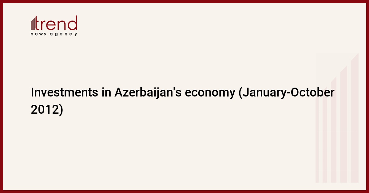High investment activity continues in Azerbaijan. According to the State Statistics Committee, 11.135.8 billion manat was invested in the economy of Azerbaijan in January-October 2012 from all financial sources, increasing by 26.8 percent compared to the figures of the same period of the last year. In October 2012, 1.285.2 billion manat was invested in Azerbaijan's economy, which is 12.4 percent less than investments in October 2011. (1.467.3 billion manat - best index in the current year)