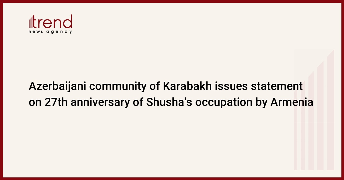 The Azerbaijani community of the Nagorno-Karabakh region of Azerbaijan has issued a statement on the 27th anniversary of the occupation of Shusha by the armed forces of Armenia, Trend reports May 8.