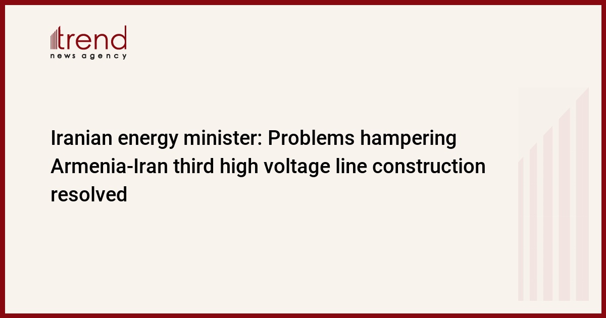 The problems hampering the construction of the Armenia-Iran third high voltage line have been resolved, Iranian co-chairman of the Armenian-Iranian intergovernmental commission, Energy Minister Majid Namdz said today, ARKA reported.